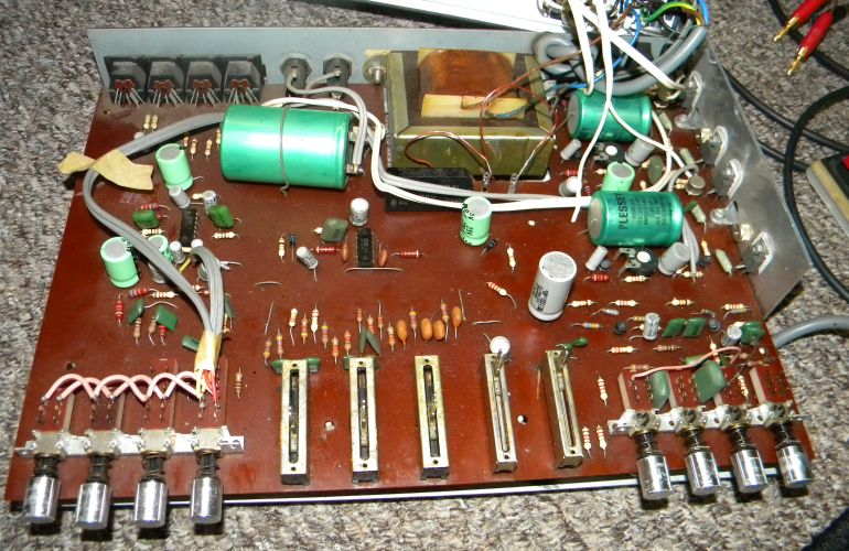 Before powering this up I dismantled the left & right amplifier boards, good job I did the 220µF capacitors near the big ones were almost open circuit! I replaced all the small caps and it sounded ok, yes I know it's an Amstrad but better made than the Integra (just)!